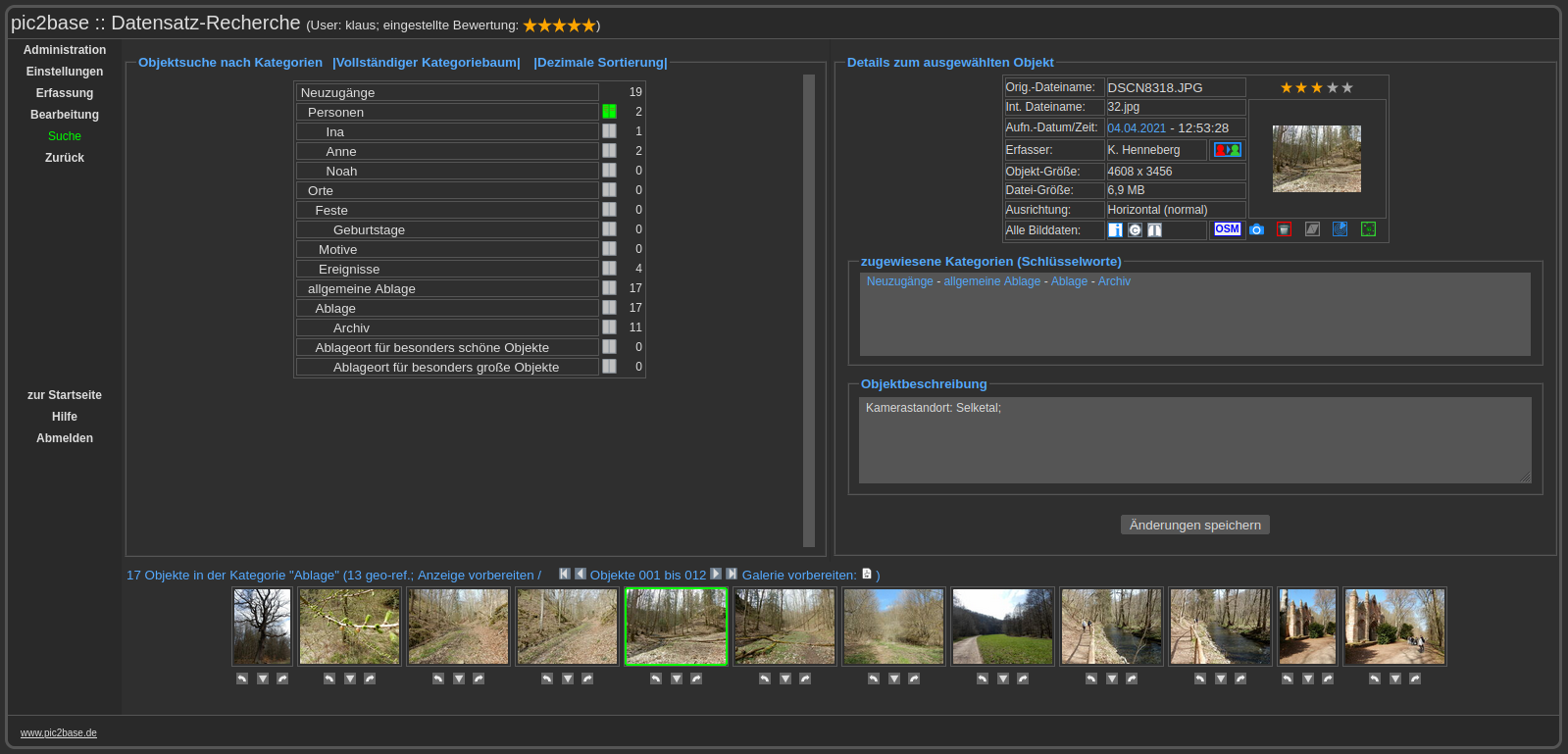 - Suchmöglichkeiten u.a. nach Datum, Kategorien, Beschreibungen, Kamerastandorten, Meta-Daten...